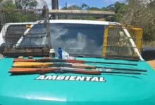 O Batalhão de Polícia Ambiental (BPA) prendeu um homem, apreendeu um arsenal de caça, além de seis aves silvestres na…
