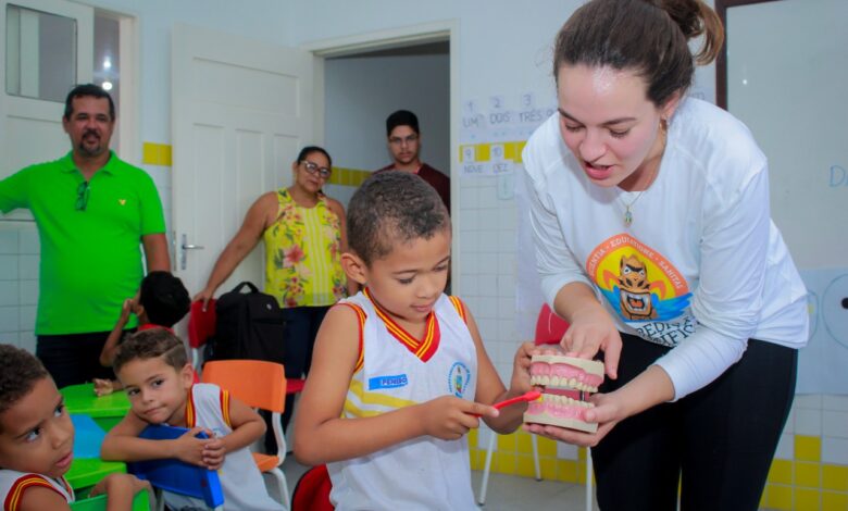 Ao mesmo tempo, a criançada do Jardim 1 da Escola Municipal Douglas Apratto Tenório recebia orientações sobre higiene e saúde bucal. De forma lúdica, a turminha aprendeu mais e ainda ganhou kit com escova e pasta de dente.