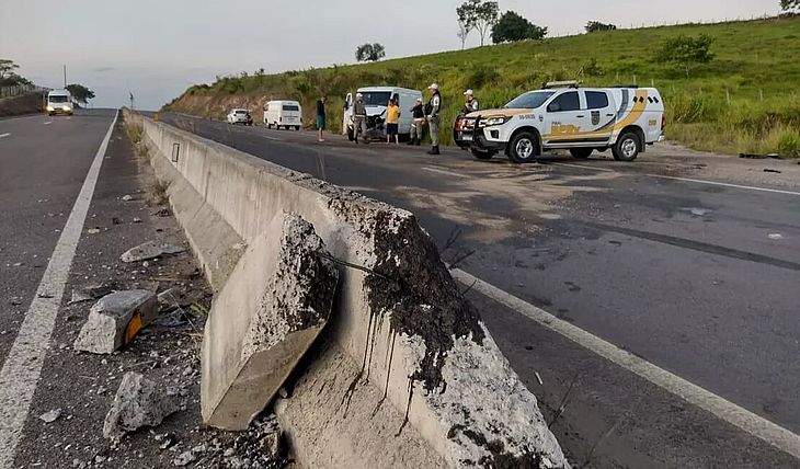 Duas pessoas ficam feridas após van colidir contra mureta de contenção na AL-220