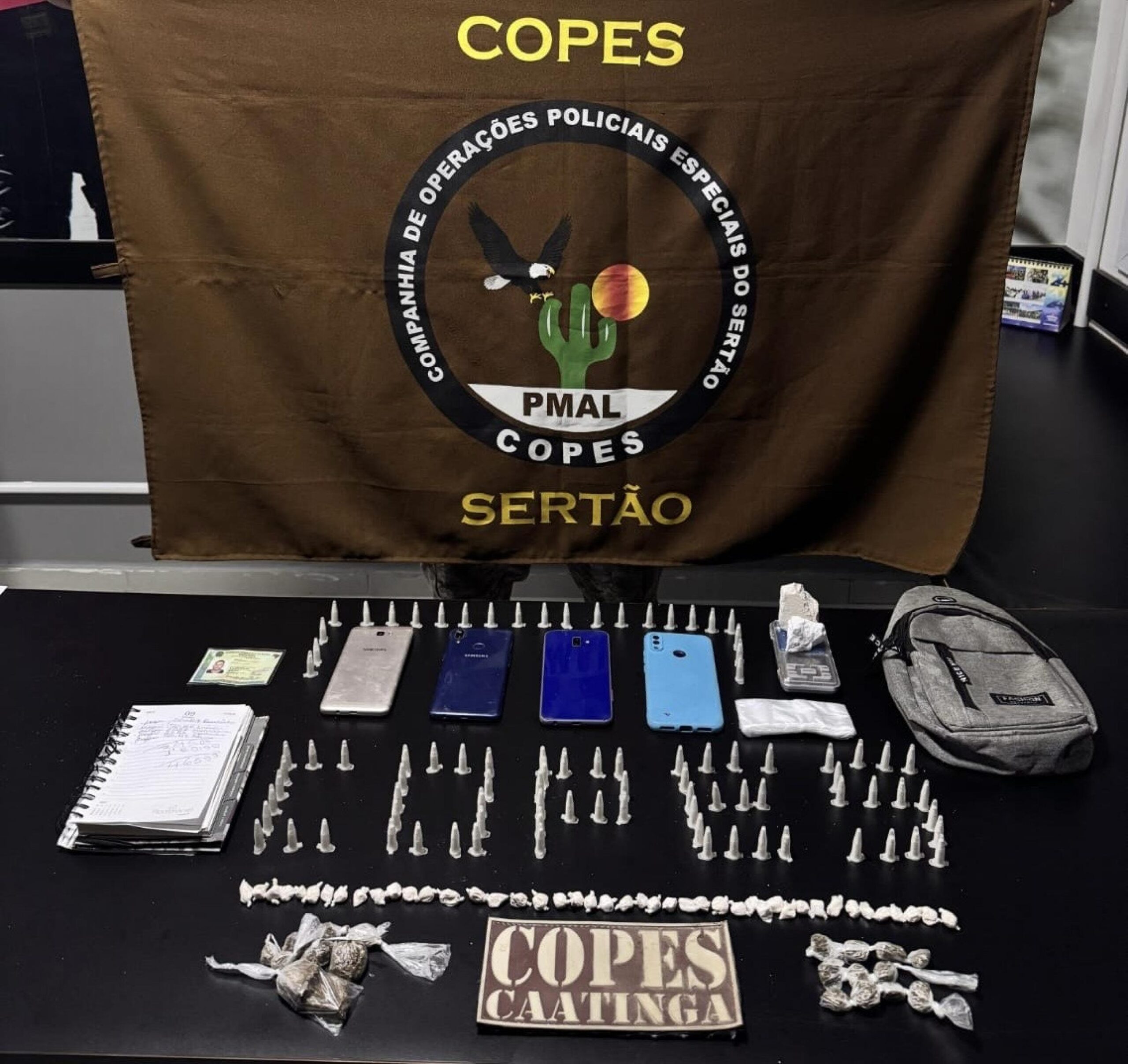 Já no Sertão, equipes da Companhia Independente de Operações Policiais Especiais do Sertão (COPES) prenderam um homem suspeito de tráfico de drogas durante a averiguação de uma denúncia anônima. Segundo os relatos, o rapaz utilizava uma residência para o comércio dos ilícitos. Ao chegar ao local indicado, as guarnições flagraram o homem em posse de uma bolsa contendo entorpecentes.