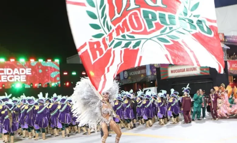 Terceira escola a entrar na avenida na segunda noite de desfiles, a Mocidade levantou a arquibancada com refrão forte e bateria afiada.