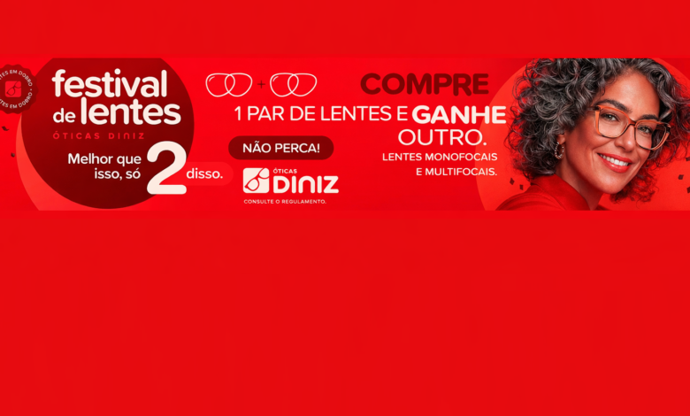 Se você está pensando em trocar seus óculos, essa é a hora certa. A Óticas Diniz lançou o Festival de Lentes, com uma oferta simples e vantajosa: na compra de um par de lentes, você ganha outro.