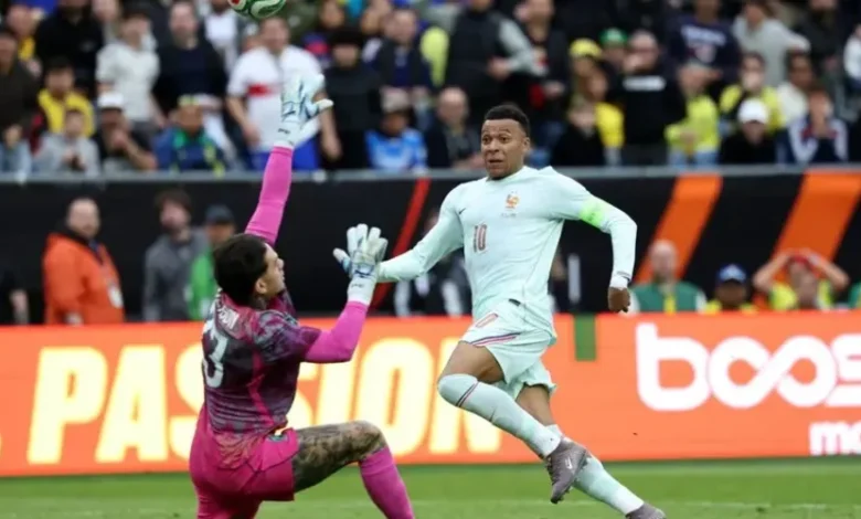 Do outro lado, a França tinha mais volume de jogo, mas não necessariamente domínio. Wesley foi incansável na marcação e ofereceu pouco espaço para o avanço francês pela esquerda. No outro, Léo Pereira e Douglas Santos faziam o que podiam para tentar parar Mbappé. E a dupla teve relativo sucesso até os 31 minutos, quando o craque francês recebeu lançamento de Dembélé, deixou o dois brasileiros para trás na velocidade e tocou por cobertura na saída de Ederson, abrindo o marcador.