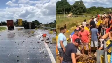 Carreta tomba e carga de cerveja é saqueada por populares em Porto Real do Colégio