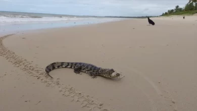 Um jacaré-de-papo-amarelo foi resgatado com vida nesta quarta-feira (14) na Praia de Carro Quebrado, no município de Barra de Santo…