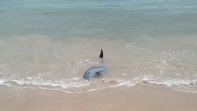 Um golfinho encalhou nesta quinta-feira (27) na praia do Pontal de Coruripe, no município de Coruripe, Litoral Sul de Alagoas.…