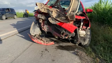 Carro fica destruído em acidente com caminhão na BR-424, em Marechal Deodoro
